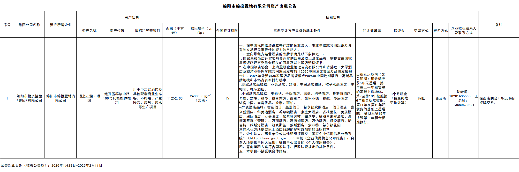绵阳市PP电子平台置地有限公司资产出租公告