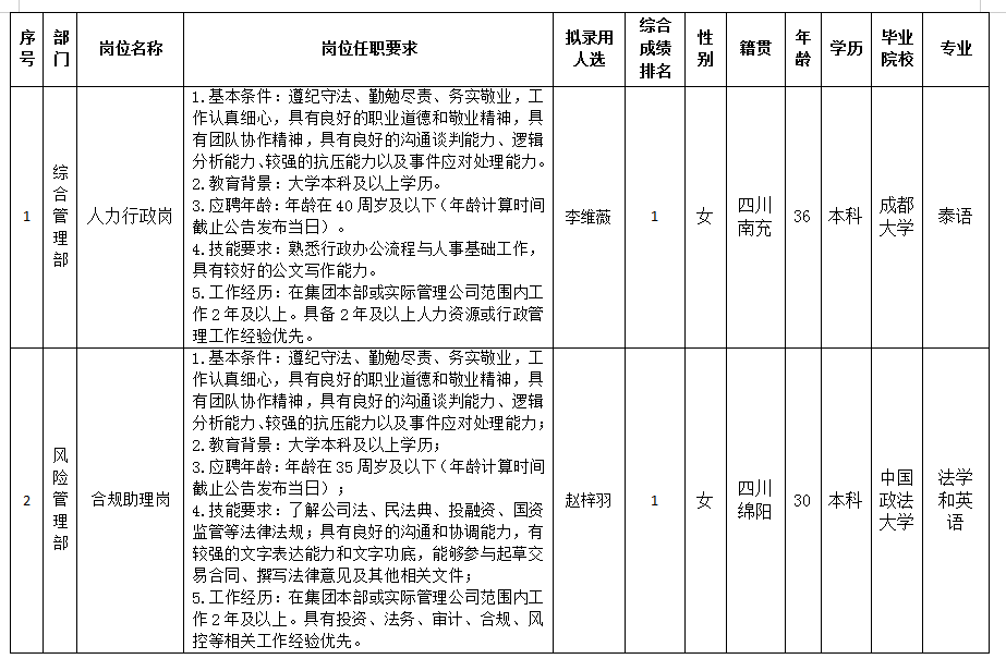 【内部竞聘】绵阳PP电子平台产业投资有限公司关于内部选聘人力行政岗等岗位拟录用人员的公示